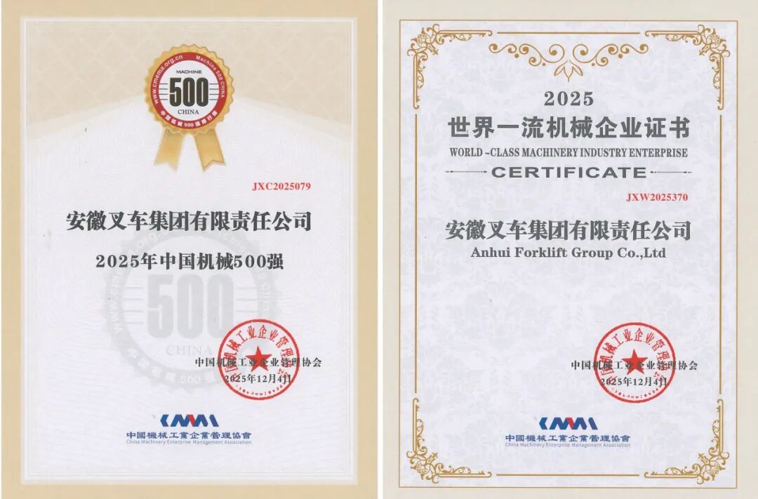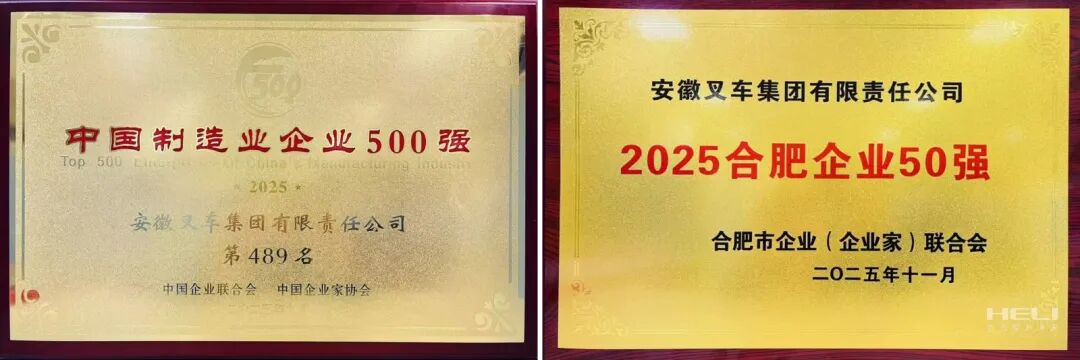 近期,國家及省市各級企業(yè)聯合會、企業(yè)家協(xié)會陸續(xù)發(fā)布年度企業(yè)榜單。憑借穩(wěn)健的經營業(yè)績與卓越的實踐表現,安徽叉車集團成功入選“2025中國制造業(yè)企業(yè)500強”、“2025安徽企業(yè)100強”、“2025安徽制造業(yè)100強”、“2025安徽百強企業(yè)戰(zhàn)略新興業(yè)務營收30強”及“合肥市50強”等多項權威榜單。尤為值得一提的是,公司今年首次躋身“中國制造業(yè)企業(yè)500強”,排名第489位;同時,在“安徽企業(yè)100強”和“合肥市50強”中的排名也實現穩(wěn)步提升,分別較“十三五”末提升7位和5位。多項榮譽的取得,是公司高質量發(fā)展的生動體現。